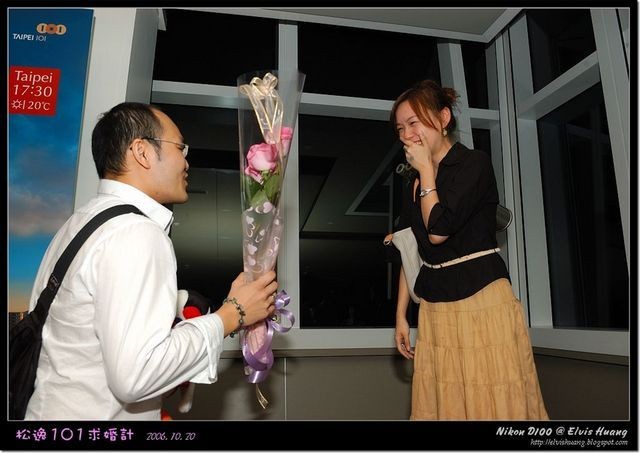 接下來晚宴是下巴芽子的婚宴,芽子也是水某大學相愛多年的愛人,整個婚宴過程中最讓我感動的部份,莫過於下巴那準備求婚的過程,是英雄惜英雄吧(有種自抬身價的感覺),下巴很有心的在101大樓上準備了一系列的求婚驚喜 註1,女主角芽子可是很感動的合不攏嘴 註2,婚禮現場看影片時淚珠滾滾湧現,一系列的驚喜都是想要給女主角一輩子難忘的感動,回想到跟水某求婚,也是來個大陣仗找了一堆捧憂硬是讓水某無法拒絕,心中那喜孜孜的暖意湧上心頭,好像昨日重現般,話講太多,寫這篇目的是想要把難得的感動紀錄起來,留給水某和我。